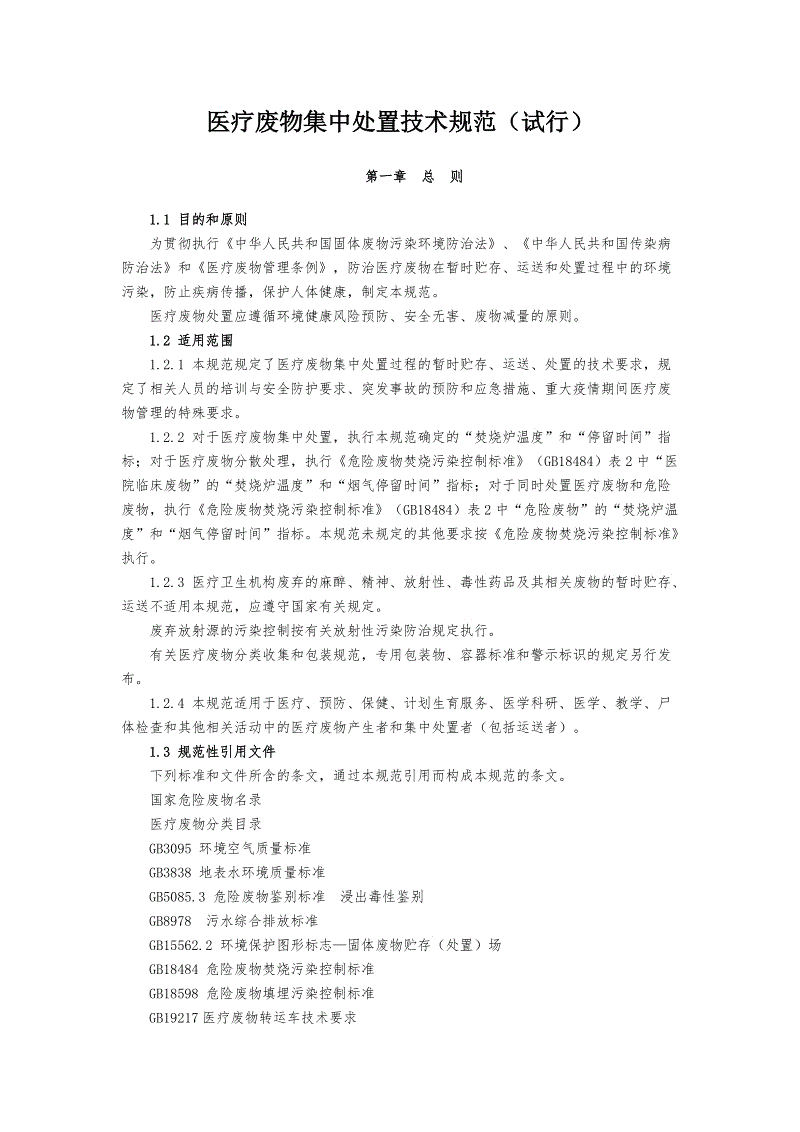 为贯彻执行《中华人民共和国固体废物污染环境防治法》、《中华人民共和国传染病防治法》和《医疗废物管理条例》,防治医疗废物在暂时贮存、运送和处置过程中的环境污染,保障人体健康,批准发布《医疗废物集中处置技术规范》(试行)。